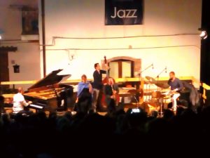 E’ stata una serata dipinta dall’icasticità sonora propria del sassofono, quella di ieri sera, al Festival delle Serre di Cerisano. Una serata iniziata in Palazzo Sersale, nell’ambito della Sezione Classica, in quel meraviglioso canalizzatore d’energia che è il Cortile del Pozzo, con il concerto, compreso nella rassegna “Musica Oggi e Domani”, curata dal professor Massimo Belmonte, in collaborazione con il professor Vincenzo Palermo, dell’Orchestra di Sax del Conservatorio di Cosenza, diretta dal professor Paolo Trampetti. Più che un’orchestra di sax, “un coro di sax”, come ha affermato Trampetti: un “coro” che ha offerto l’esecuzione di alcune composizioni “giovani”, tra cui anche una, alquanto originale, del giovane maestro cerisanese Tommaso Greco, in un concerto durante il quale, ad alcuni iniziali brani di taglio più sperimentale, sono seguiti pezzi che il direttore dell’orchestra ha definito “più tranquilli”, attraverso una sequenza coronata, infine, da una trascinante versione sax del celebre Libertango di Astor Piazzolla. Un itinerario di composizioni che ha messo in evidenza la versatilità di uno strumento, in tutti i suoi registri e al cospetto di svariati generi: dalle sonorità nuove, e i relativi ritmi, al blues e allo swing, volgendo uno sguardo alle influenze provenienti dall’America, ove il sax, del resto, ha avuto una vera e propria consacrazione col jazz. Proprio il jazz, la sezione riservata a questo irresistibile genere musicale, ha offerto, più tardi, l’opportunità di incontrare nuovamente il Sax, questo meraviglioso strumento realizzato, negli anni ’40 dell’800, da un inventore di strumenti belga. E si è trattato di un incontro con alcuni sax d’eccezione, quelli che nelle mani e col fiato di Stefano Di Battista non restano semplici strumenti musicali, diventando, piuttosto, sublimi viatici verso stati d’animo eterei, cagione di appagante piacere interiore, elementi ipnotici in un segmento di tempo che vola via troppo presto, dopo essere arrivato in alto, tanto in alto, come la voce unica di Nicky Nicolai, compagna d’arte e di vita dell’estroso sassofonista, col quale, insieme al basso di Daniele Sorrentino, alla batteria di Elio Coppola e al pianoforte di Andrea Rea, ha dato vita a una indimenticabile serata, resa, se possibile, più piacevole, dalla simpatia dell’affiatata coppia, abile a interagire con l’avvinto parterre. Una serata che ha avuto due anime, una strumentale e una completata dalle parti vocali, con la prima che ha visto Di Battista condurre verso i suoi sax l’ammirato stupore del pubblico affollante lo spartano ma confortevole teatro di via Pianolungo, accarezzando le chiavi con leggerezza, mentre le ance vibravano con potente eleganza, in un susseguirsi di assoli e numeri entusiasmanti, in cui ha collocato omaggi eccellenti, come quello a Ennio Morricone, con una particolarissima versione, che ne ha rispettato il tratto malinconico, di “Sean Sean”, tema principale della pellicola “Giù la testa”, di Sergio Leone, e a Pino Daniele, con una struggente interpretazione di “Quando”, tratta dalla colonna sonora del film “Pensavo Fosse amore… invece era un calesse” diretto da Massimo Troisi, al termine della quale s’è potuto udire un appassionato accenno di “ ‘O Sole Mio”. L’osmosi tra la “voce” del sax e quella della Nicolai ha, invece, connotato la seconda parte del concerto, con la raffinata cantante romana che ha generosamente offerto momenti estatici, grazie a una vocalità di rara intensità e a un’estensione che ha toccato anche vette liriche, proponendo, accompagnata dal resto della band e col sassofono a fare da sottile e prezioso filo conduttore, delle personali interpretazioni di alcuni tra i più grandi successi della musica leggera italiana, da “Se Stasera sono qui”, di Luigi Tenco, a “Piazza Grande”, di Lucio Dalla, fino alla trionfale conclusione con l’intramontabile “Nel blu dipinto di blu” di Domenico Modugno, che ognuno dei presenti ha portato con sé, a casa, nelle strade e nelle piazze del Festival, a serbare gli attimi di una serata indimenticabile, vissuta all’insegna del sax, tra Palazzo Sersale e via Pianolungo, tra Classica e Jazz, tra Musica e… Musica, in un connubio sospirante nel canto di queste notti cerisanesi.