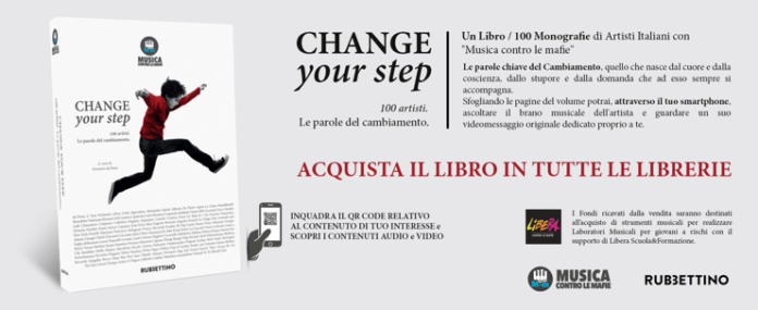 “CHANGE your step | 100 artisti. Le parole del cambiamento” è il libro cross-mediale, innovativo e anche socialmente utile, disponibile in tutte le librerie a partire dal 10 gennaio 2019 per Rubbettino Editore, a cura di Gennaro de Rosa, presidente di Musica contro le mafie, associazione che agisce sotto l’egida di Libera (Associazioni, nomi e numeri contro le mafie).