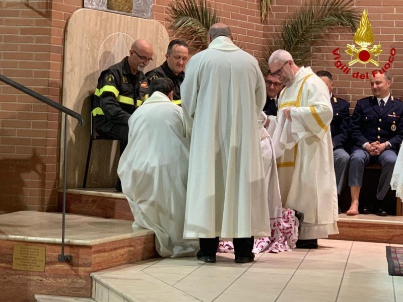 È stata celebrata ieri da Don Pier Maria Del Vecchio, cappellano della Polizia di Stato e dei Vigili del Fuoco, il rito della lavanda dei piedi presso la chiesa di San Giovanni Battista, al rito ha partecipato una rappresentanza dei Vigili del Fuoco e della Polizia di Stato di Cosenza; alla cerimonia erano presenti il Comandante del Vigili del Fuoco ed il Questore di Cosenza.