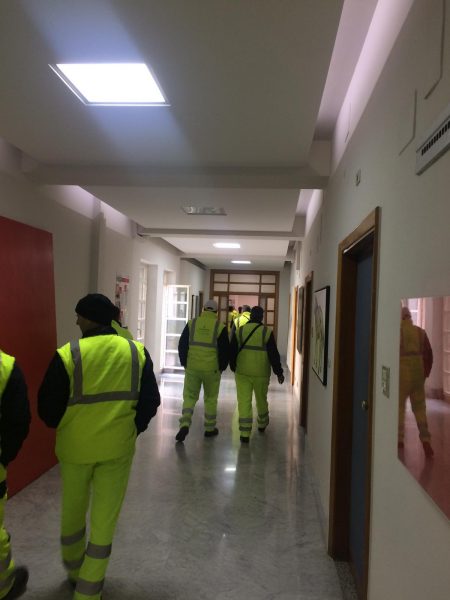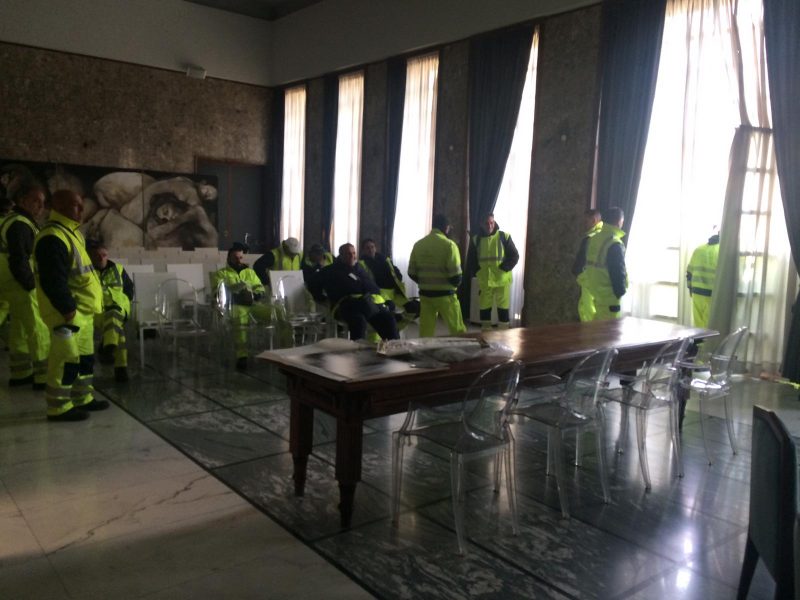Le “tute gialle” a sorpresa sono entrate nelle stanze del Comine di Cosenza ed hanno occupato, per protesta, il Municipio.