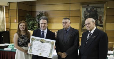 Pochi giorni prima, il 3 giugno, anche il Consiglio Generale dell’Accademia Costantina – Istituto con Alti Patronati Spirituali di Sua Eminenza Reverendissima Cardinale Manuel Monterio De Castro di Santa Romana Chiesa e di Sua Eccellenza Reverendissima Mons. Luca Brandolini, Vescovo della Chiesa Cattolica, Vicario Arciprete dell’Arcibasilica Papale di San Giovanni Laterano in Roma, ha voluto celebrare la figura illustre di Carlo Nardi consegnando la Benemerenza Accademica di “Accademico d’onore” . Ha consegnato la Benemerenza Accademica, l’ Ambasciatrice dell’Accademia, Maria Rosaria Caputo, su incarico del Gran Cancelliere, Dr. Uff. Cav Don Gennaro Rimauro di Villalta, nelle mani del figlio Salvatore