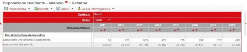 Dunque perché non andare a leggere i dati, ad esempio, della città di Rende e poi della Provincia e della Regione?