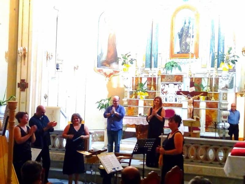Ascoltare buona musica non è scontato, comporre ed eseguire buona musica non è semplice: quando, però, i sensi si trovano al cospetto di tali sideree congiunzioni, beh, allora la percezione spaziotemporale di un attimo, nel caso specifico di una sera volgente verso la fine dell’estate, si apre sull’infinito, sull’interminata vastità della bellezza più pura, dell’incanto più ammaliante. Ecco, la serata vissuta ieri, sotto la volta, fregiata da stucchi e luce, della Chiesa del Carmine di Cerisano, che ha ospitato il secondo appuntamento inerente alla Sezione “Classica” del XXVI Festival delle Serre, ha condotto lo sguardo interiore degli appassionati, affollanti l’unica navata del bellissimo edificio di culto seicentesco, ad alzare lo sguardo verso la linea d’orizzonte ove sorge il sole della nostra floridezza recondita; quell’orizzonte da cui il plumbeo ripetersi del quotidiano ci distoglie, spingendo il nostro sguardo verso il basso, verso la materialità dell’ordinario, facendoci vivere in maniera incompiuta, monca la fugacità mondana.