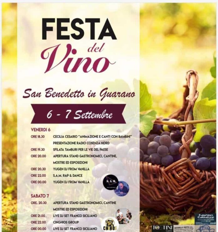 La festa del vino è una manifestazione popolare di tradizione nata più di vent’anni fa presso San Benedetto in Guarano (frazione di San Pietro in Guarano).
