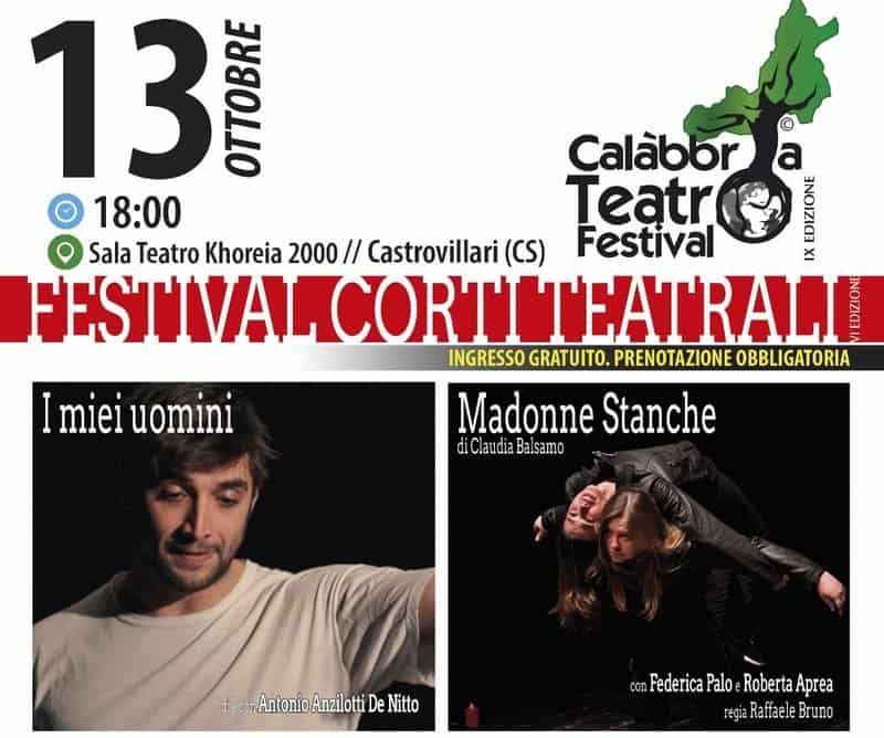 Si proseguirà con I miei uomini di e con Antonio Anzilotti De Nitto. Storia di un uomo che ripercorre tutta la sua vita durante gli anni del nazismo fino ad arrivare al fatidico momento in cui viene arrestato. A chiudere la kermesse dei corti teatrali L’attrice è tutta crosta – Ciarle di maschera dal sottosuolo; testo di Adriano Marenco, regia di Francesca Puopolo con Nathalie Bernardi. Una vecchia Gloria Swanson o una giovane Marlene subrette, dai molteplici volti che si fondono in gioia e orrore all’ombra di ombrellini da cocktail e umilianti autorappresentazioni. Lo spettacolo analizza il rapporto genitori/ figli attraverso il fallimento, l’inadeguatezza al proprio ruolo. Sia di figlia che di madre. Testo che richiama la tematica di quest’anno del Festival, appunto “Rapporto genitori/figli”.