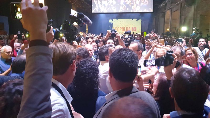 Eppure l’entusiasmo c’è, eccome. Migliaia di persone, politici e simpatizzanti, ad accoglierlo. Tutti pronti ad osannarlo e tutti col capo all’insù per sbirciare il simbolo di un nuovo partito, di una nuova vita governativa, tra qualche anno. Chissà.