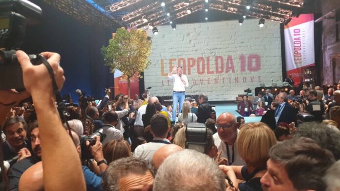 Una rockstar. O quasi. Matteo Renzi entra nella vecchia stazione delle Leopolda manco fosse Bono Vox, leader degli U2 più che di Italia Viva.