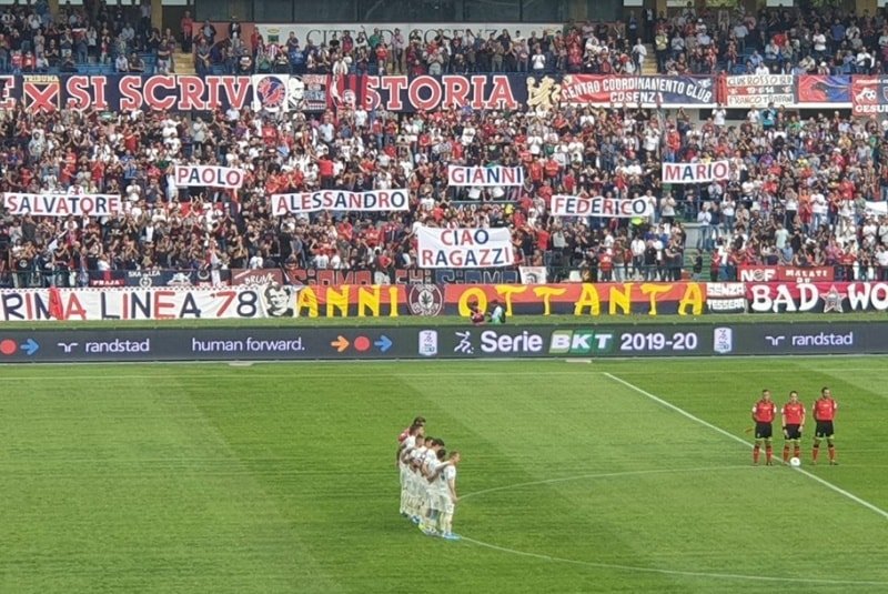 Prima della gara tra il Cosenza ed il Chievo Verona, il raccoglimento allo Stadio San Vito-Gigi Marulla per non dimenticare le 4 giovani vite spezzate quella maledetta notte tra sabato 5 e domenica 6 ottobre.