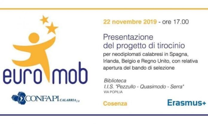 Un significativo percorso volto alle reale inclusione e alla crescita delle persone e delle imprese e, non ultima, dell’imprenditorialità sono il filo conduttore di “EUROMOB”, il progetto Erasmus di cui Confapi Calabria è capofila. Venerdì 22 novembre, alle ore 17, nella Biblioteca dell’IIS “Pezzullo-Quasimodo-Serra” di Cosenza, la presentazione del progetto dedicato ai neolaureati calabresi in Spagna, Irlanda, Belgio e Regno Unito, con la relativa apertura del bando di selezione.