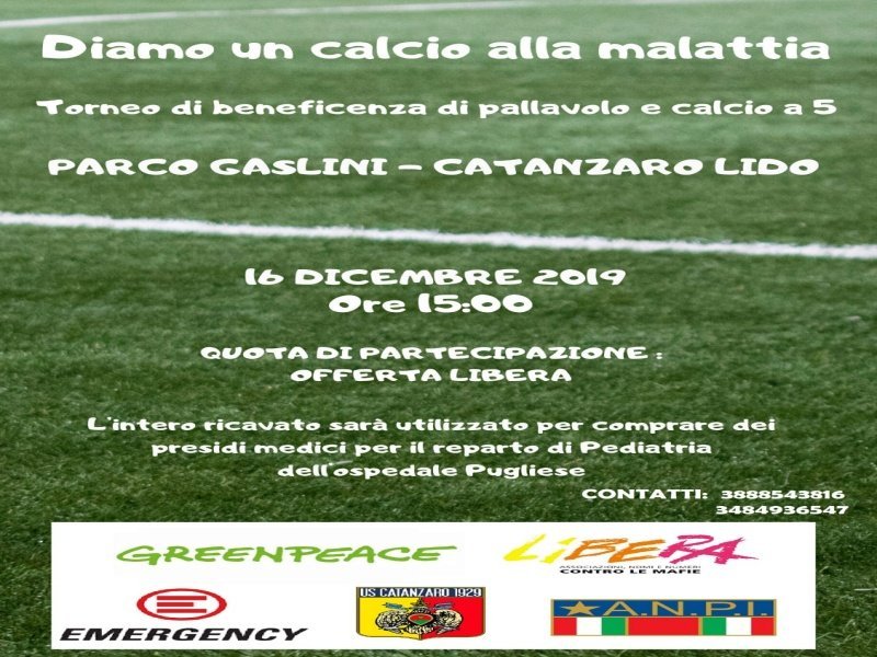 Ritorna la manifestazione benefica “Diamo un calcio alla malattia”. Un’iniziativa che, da anni, vede uniti per la solidarietà gli iscritti dell’Università Magna Graecia ed i cittadini di Catanzaro. Evento sportivo che si terrà Lunedì 16 dicembre 2019, al “Parco Gaslini”, a partire dalle ore 15:00.