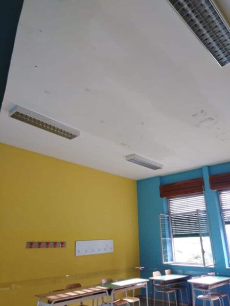 «A questo – è scritto in una nota – vanno aggiunti impianto di riscaldamento mal funzionante e una palestra agibile solo nei mesi in cui non piove. Le richieste di intervento da parte dei genitori sono, al momento, cadute ancora nel vuoto». Come se non bastasse «l’infiltrazione del soffitto si è riscontrata già l’anno scorso in più aule del secondo piano, nel corridoio, nella segreteria e nella palestra. A causa delle piogge di novembre l’umidità del soffitto della scuola è notevolmente peggiorata, causando notevoli disagi alla classi del secondo piano.