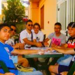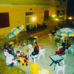 Nei mesi di giugno e luglio il cortile del bar era affollato di tavolini e noi trascorrevamo lì interi pomeriggi, soprattutto nei giorni di agosto. Questo spazio si accendeva di voci e volti nuovi, mille racconti e mille colori si intrecciavano in un vero e proprio carnevale dell’anima. Stessa storia, stesso posto, stesso bar ogni anno. Per noi è stato una vera e propria dimora, in cui cercare condivisione e dove poter contare sulla complicità degli amici di sempre: serate colme di risate e aneddoti personali che terminavano alle prime luci dell’alba cantando a squarciagola: “Ubriaco canta amore” o l’ultimo tormentone “Siamo gente di montagna”.