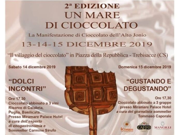 La città di Trebisacce si prepara ad un dolce Natale, letteralmente parlando, dato un Mare di Cioccolato invaderà le sue strade. La seconda edizione della manifestazione, organizzata dal Comune di Trebisacce, in collaborazione con la Delegazione Calabria della Scuola Europea Sommelier e con la partecipazione di Assopec (Associazione Commercianti di Trebisacce), si annuncia entusiasmante e ricca di eventi.