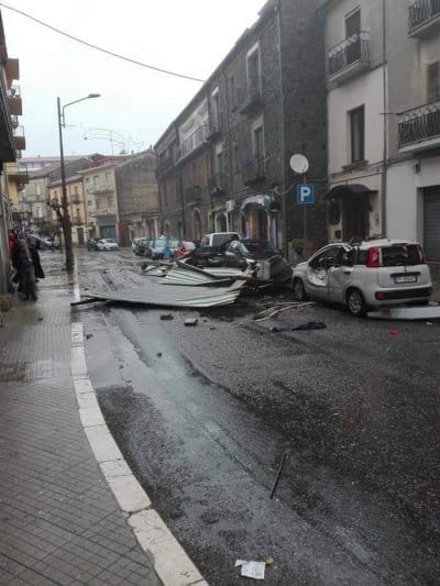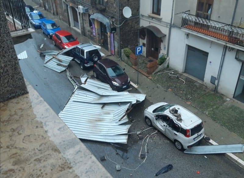 Tragedia sfiorata a Rogliano in provincia di Cosenza. E’ di poco fa, la notizia che arriva in redazione del tetto divelto di una palazzina sita nel centro della cittadina. Le grosse lamiere a causa del forte vento si sono staccate dal tetto per volare giù sulla strada. Per fortuna in quel momento nessuno transitava in quella zona. Danni alle autovetture parcheggiate a ridosso dello stabile
