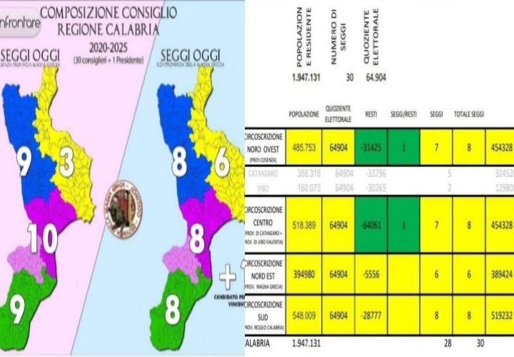 Fermo restando che la Sibaritide rappresenta in termini demografici il 26% dell’intero collegio Nord e che il Crotoniate rappresenta il 24 % del collegio Centro, è pur vero che le due aree assemblate rappresentano oltre il 23% dell’intera demografia regionale, pertanto il rapporto che esce in termini di rappresentatività è assolutamente squilibrato rispetto alle altre aree regionali, basti pensare che in area brutia, lamentino, catanzarese si porta in regione un rappresentate ogni 52mila abitanti, mentre un area magno greca 1 ogni 130mila abitanti.