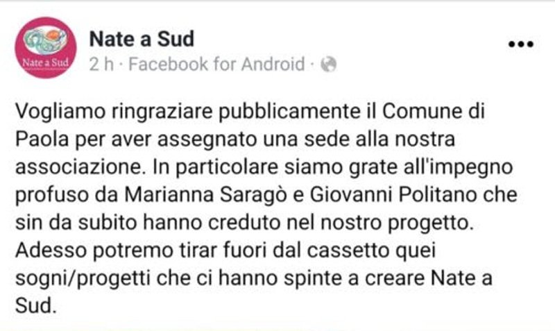E il sapore dell’azzardo è tanto più amaro se si pensa che, proprio a Paola ci sono ben altre attività (di volontariato pluridecennale) che, per godere di una sede, devono farsi carico di un canone di locazione a privati (i donatori di sangue FIDAS, ad esempio, sono sottoposti a esborso di 1.000 euro mensili): le loro richieste, in termini di assegnazione di una sede, sono sempre rimaste solitarie e inascoltate.