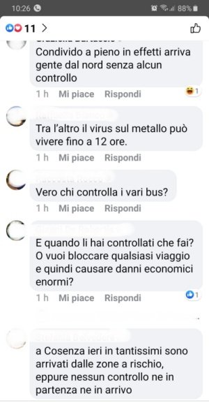 Oramai è partita la “caccia alle streghe” e nascono sui social gruppi che condividono notizie sul Coronavirus dai quali si apprende di tutto, dalle fake news alle storie vere (vissute sulla pelle di chi scrive). E così abbiamo appreso che ieri in tanti, sono giunti dalle zone a rischio in Calabria, a bordo dei pullman di lunga percorrenza, senza benché minimo controllo ne in partenza ne in arrivo…