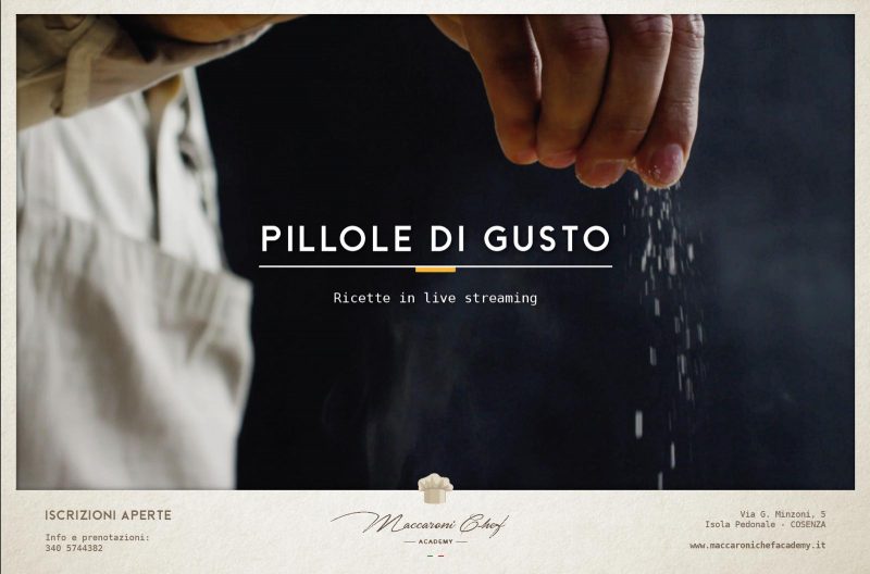 “Pillole di Gusto“. Così le ha definite il bravo Corrado Rossi. giovane imprenditore cosentino e anima della “Maccaroni Chef Academy“. “Una sorta di aspirina, una “cura” a quello che sta accadendo per via del coronavirus“, aggiunge.