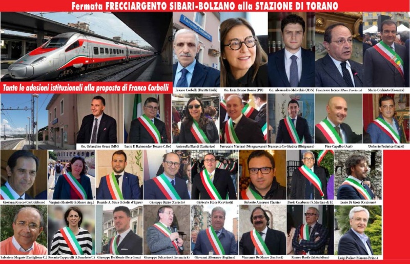 Fermata Frecciargento Sibari-Bolzano alla stazione di Torano-Lattarico: continuano le adesioni dei sindaci e di altre importanti figure istituzionali.