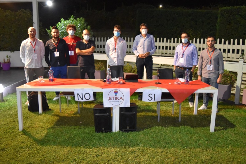 Nonostante la situazione generale, dovuta al Covid, l’evento è risultato tra i più riusciti con una presenza numerosa di pubblico organizzato in piena sicurezza nel giardino della struttura. Il dibattito dedicato al referendum del 20 e 21 settembre è apparso quasi come un battesimo definitivo dell’associazione sul territorio. Il confronto moderato da Gianfranco Bria di Etika- Laboratorio di idee è stato animato da Carlo Tansi per le ragioni del SI e da Francesco Campolongo per le ragioni del NO. L’amministrazione comunale è stata rappresentata dal consigliere delegato Silvio Ranieri, intervenuto per portare i saluti del Sindaco Pietro Caracciolo.