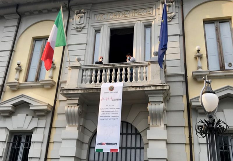 L’articolo 32 della Costituzione Italiana ricorda che la salute è un diritto di tutti, nessuno escluso, e da questo pomeriggio il testo si trova esposto in un banner sul balcone di Palazzo San Nicola a Palmi – con tanto di hashtag #chiASPettamuore – per volere del sindaco e dell’amministrazione comunale, che dopo le vicende degli ultimi giorni legate allo scandalo nel settore della sanità regionale, vogliono ribadire che la Calabria non è figlia di un Dio minore, e che i calabresi hanno diritto ad una buona sanità.