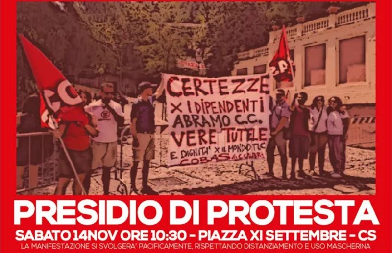 Per tutto questo ma anche per sollecitare un incontro a istituzioni e azienda, sabato 14/11/2020 alle ore 10:30 saremo in Piazza XI Settembre a Cosenza con un sit-in di protesta che si svolgerà pacificamente, rispettando il distanziamento fisico e l’utilizzo di mascherine.