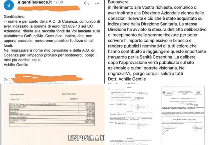 Nel caso dell’A.O. dell’Annunziata, si è conclusa a fine marzo la raccolta fondi “Cosenza Anti-Covid” organizzata da liberi cittadini tramite piattaforma autorizzata. Dopo la rassicurazione del beneficiario per conto dell’A.O. nella persona di Achille Gentile circa l’immediato utilizzo della somma, pari a €128.790,79, nonché la promessa di pubblicazione delle modalità di spesa, vediamo passare oltre due mesi – ricordiamo in piena emergenza- per la deliberazione ufficiale delle somme acquisite.