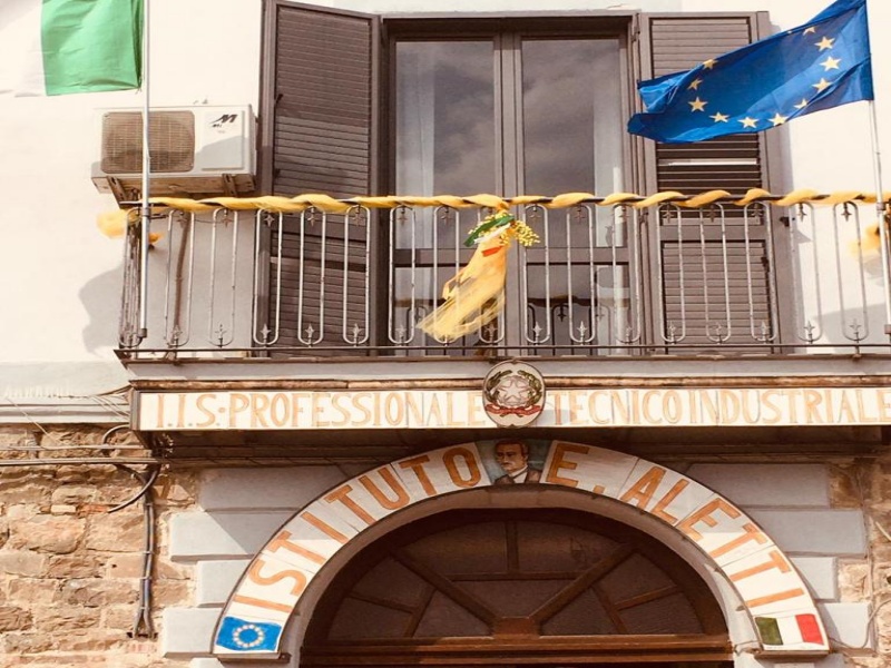Nonostante la Didattica a distanza in Calabria, infatti, l’Aletti si veste di giallo-mimosa. Sul balcone della Presidenza un drappo di colore giallo, appunto, simboleggia il senso di partecipazione all’attuale Festa della Donna. Il resto si vive all’interno dell’Istituto. Nei corridoi del primo piano altri nastri gialli segnati da un significativo «Rinascere!!» che è il canto della scuola in questa importante vigilia di primavera umana inneggiante al cosmo femminile di ogni luogo e tempo.