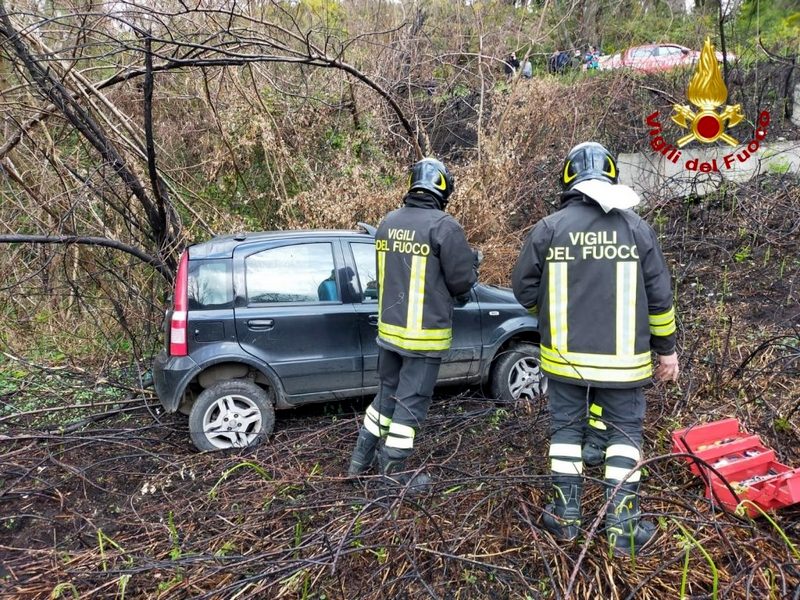 Una donna a bordo della sua auto, una Fiat Panda, per cause in corso di accertamento ha perso il controllo della vettura finendo in una scarpata fuori dalla sede stradale. Insieme a lei il figlio di 7 anni.