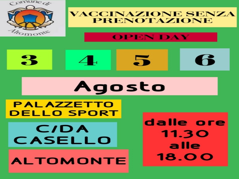Prevenzione, al fine di sensibilizzare l’intera popolazione sulla necessità e sull’importanza della vaccinazione contro il Covid-19, la Città nelle giornate da martedì 3 a venerdì 6 agosto ospiterà quattro intere giornate di Vax Day.