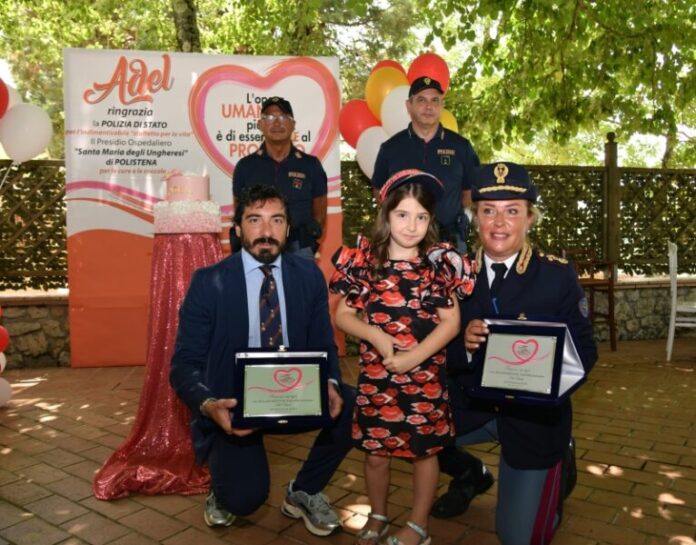 La piccola, completamente guarita grazie alla tempestiva somministrazione del farmaco, ha voluto omaggiare, per il loro prezioso contributo, la Questura e la Polizia Stradale di Reggio Calabria donando una targa di ringraziamento.