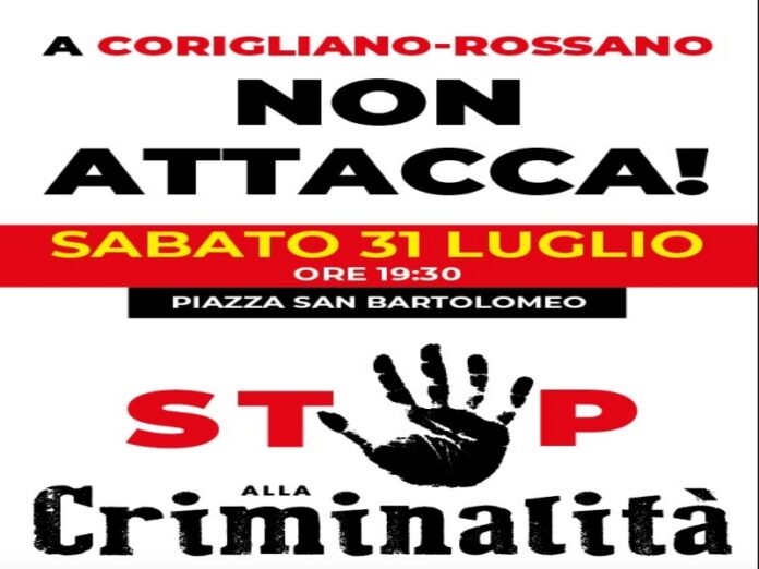 “A Corigliano Rossano non attacca”, lo slogan coniato per l’occasione. Un no deciso al nuovo avanzare del fenomeno criminale.
