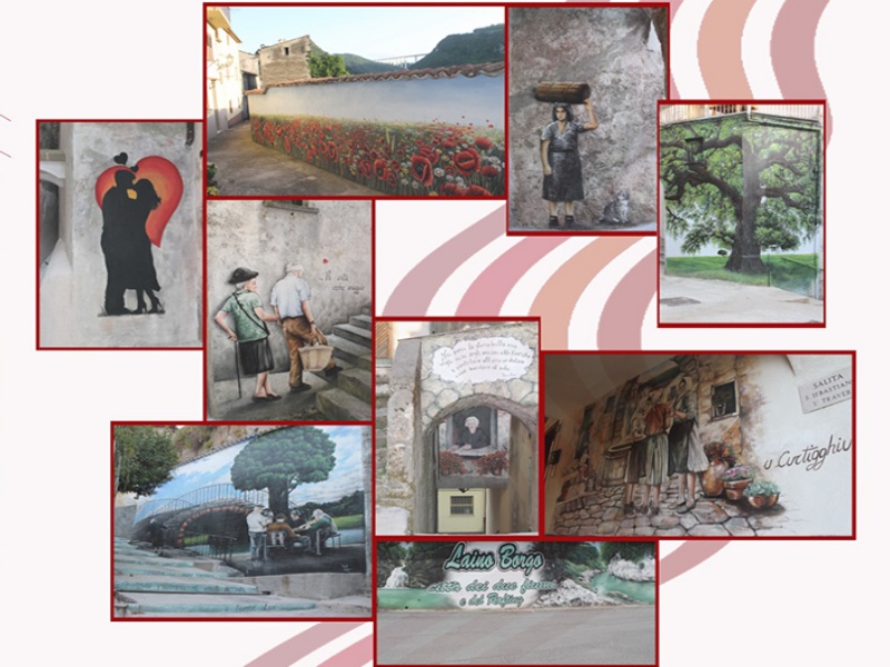 Si arricchisce di opere pittoriche il centro storico di Laino Borgo che rievocano e rilanciano la metafora della vita, che tra mille difficoltà deve tenerci sempre uniti con la forza dell’amore. L’amministrazione comunale guidata dal sindaco, Mariangelina Russo, ha chiesto a tre artiste locali Sara Palermo, Pinella Calvosa e Germana Armentano (riunite insieme nell’associazione Artemisia) di abbellire Piazza Sant’Antonio e le stradine nei dintorni con opere che raffigurano alcune tipicità di Laino Borgo e scorci di vita del paese. Ma soprattutto il sentimento che lega una vita intera e che è il vero motore per superare mille difficoltà, rappresentate da un vicoletto (denominato vicolo del Sentimento) largo solo 38 cm che può sintetizzare i momenti più duri nei quali serve comunque rimanere uniti per arrivare alla fine della vita ancora insieme, come raffigura uno dei murales del percorso che dipinge una coppia di anziani che si tengono ancora per mano.