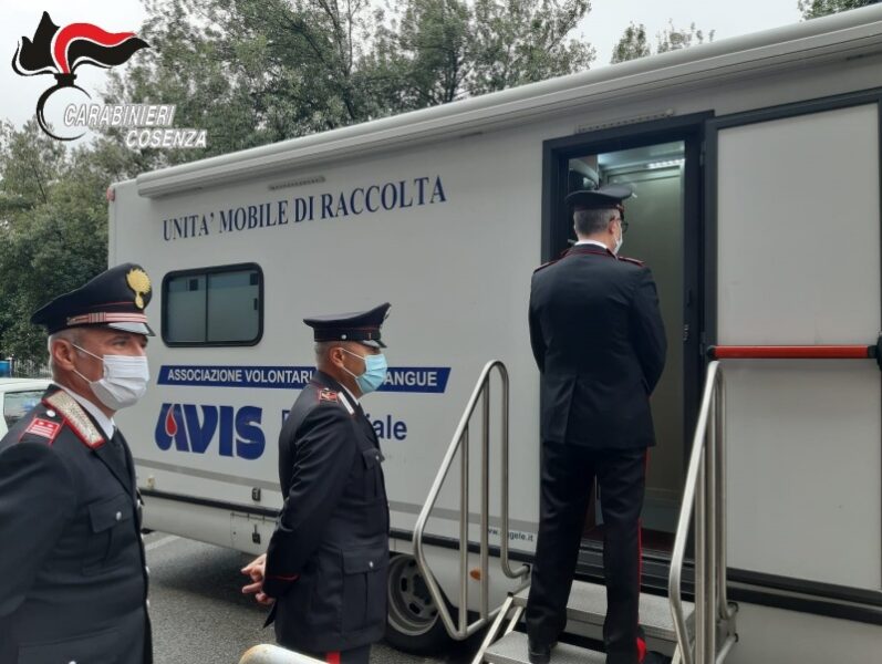 Carabinieri: angeli in divisa. Oggi 25 ottobre è entrata nella sua fase operativa una importante iniziativa che vede protagonisti i carabinieri del Comando Compagnia di Rende e la locale sezione dell’Avis. L’attività, che ha avuto luogo nel cortile dell’edificio che ospita la sezione comunale dell’Avis di Rende, con l’utilizzo di un’autoemoteca nel rispetto della normativa vigente in materia di prevenzione/contenimento del fenomeno pandemico, ha coinvolto i carabinieri, di ogni ordine e grado, che hanno deciso di diventare donatori di sangue, per contribuire al costante fabbisogno e allo scopo di favorire il conseguimento dell’autosufficienza nella provincia, particolarmente importante in periodi di forti criticità come l’attuale, a causa delle ripercussioni della pandemia da Covid -19, una condizione straordinaria che compromette il regolare approvvigionamento di sangue attraverso la donazione volontaria e che ne diminuisce la disponibilità. Una partecipazione nutrita non nuova tra i militari dell’Arma il cui 20% tra gli effettivi è donatore per scelta.