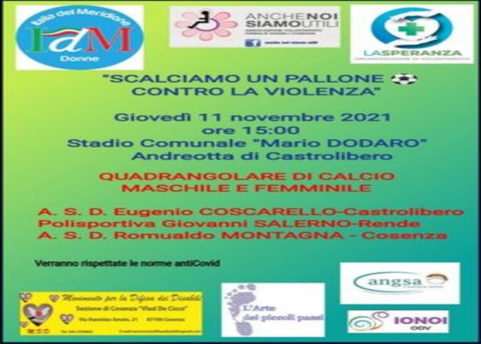 Tutti sono invitati a partecipare al quadrangolare di calcio maschile e femminile che si terrà il giorno giovedì 11 novembre alle ore 15:00 ad Andreotta di Castrolibero presso lo stadio comunale “Mario Dodaro“.