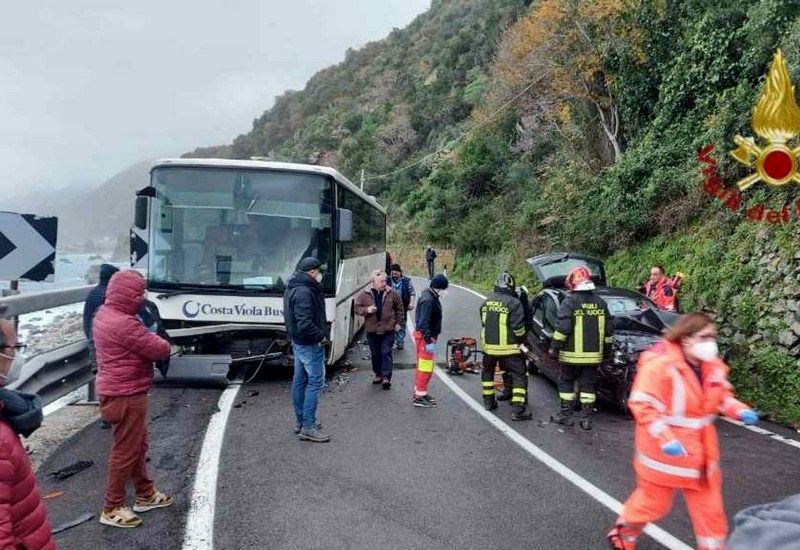 Per cause in corso di accertamento due veicoli, un auto e un pullman (proveniente da Bagnara e diretto verso Scilla) si sono scontrati frontalmente. Sul posto sono intervenuti i sanitari del 118 che hanno provveduto a trasportare i feriti all’ospedale, oltre alle forze dell’ordine e al personale dell’Anas.