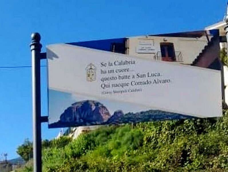 San Luca (RC): nuovo cartello all’ingresso del paese nel nome di Corrado Alvaro