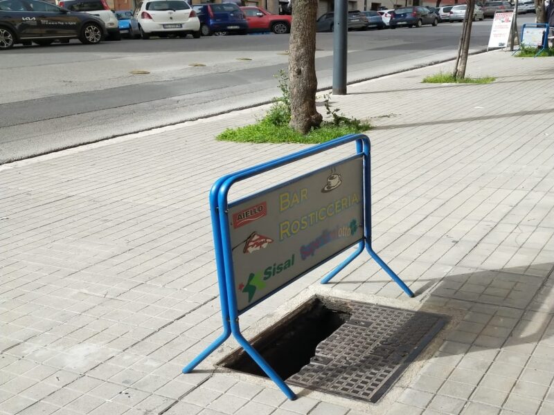 Per fortuna, però, c’è chi, impossibilitato ad aggiustare il tombino rotto a Cosenza, ha almeno posizionato un cavalletto per impedire ai pedoni di inciamparci.