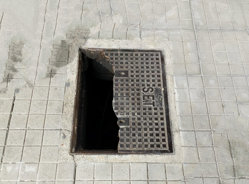 Il coperchio di tombino rotto su una zona riservata al transito dei pedoni, certamente non è una pochezza, ma è qualcosa di serio perché pericolosissimo, quindi da ripristinare immediatamente per la sicurezza dei passanti.