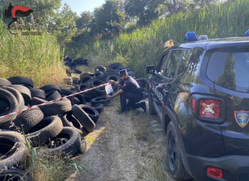 Tra le sei persone denunciate per gestione illecita di rifiuti, anche un gommista che smaltiva illecitamente pneumatici fuori uso.