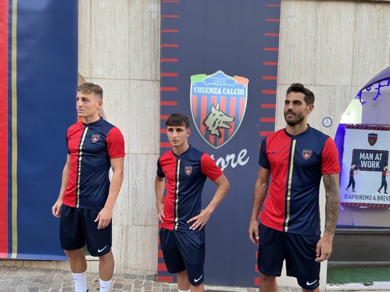 Prima della partenza per il ritiro di Sarnano, dove i rossoblù daranno il via al mese di preparazione in vista del prossimo campionato (il 15 luglio si saprà il calendario attraverso la presentazione della Lega B a Reggio Calabria), il Cosenza calcio presenta le nuove maglie per la prossima stagione. Presenti alla manifestazione alcuni dei calciatori rossoblù tra cui i nuovi arrivati Brignola e D’Urso, oltre che Vallocchia, Larrivey, Florenzi e Zilli, protagonisti dello scorso finale di stagione.