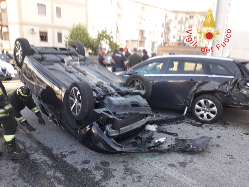 La vettura coinvolta una Peugeot 208 che per cause in corso di accertamento perdeva il controllo ribaltandosi sulla sede stradale impattando contro due autovetture (Volkswagen Passat ed Opel Insigna) parcheggiate bordo strada.