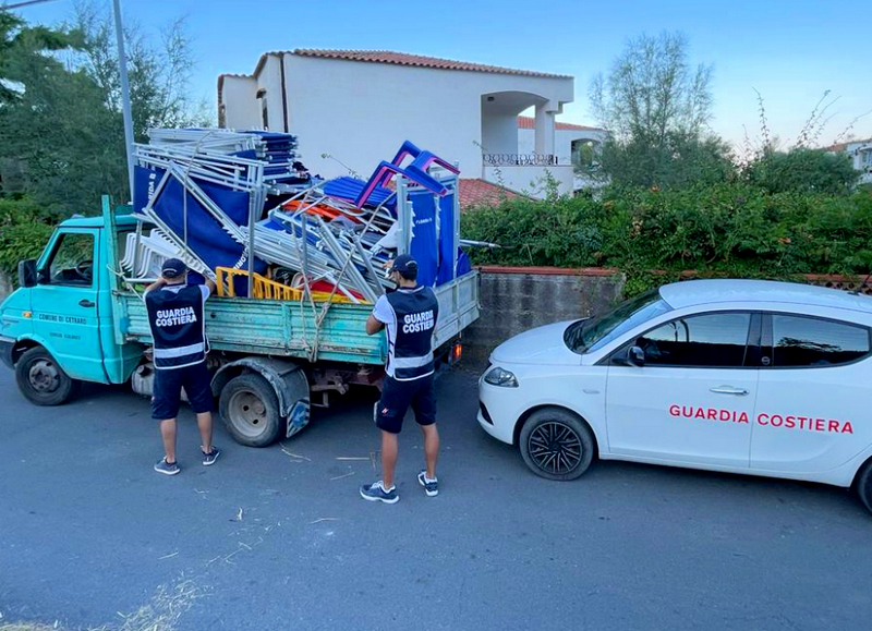 Questa mattina, personale militare dell’Ufficio Circondariale Marittimo – Guardia Costiera di Cetraro ha portato a termine una operazione finalizzata al sequestro di circa 300 attrezzature balneari di vario tipo, tra ombrelloni, tende, tavolini, sedie, sdraio e lettini, abusivamente lasciate lungo il litorale del Comune di Cetraro, restituendo alla collettività circa 5.000 mq di suolo demaniale marittimo.