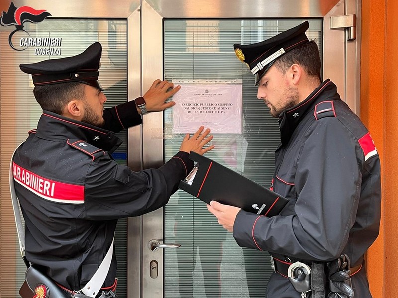 Il provvedimento, emesso dal Questore della provincia di Cosenza, scaturisce dai reiterati accertamenti eseguiti dai militari dell’Arma e a seguito dei ripetuti controlli effettuati, nonché per le violazioni riscontrate. L’articolo 100 del T.U.L.P.S. dispone che la misura di pubblica sicurezza della sospensione della licenza può intervenire in caso di “tumulti o gravi disordini”, oppure “qualora il locale sia abituale ritrovo di persone pregiudicate o pericolose” o, comunque, se il comportamento costituisca “un pericolo per l’ordine pubblico, per la moralità pubblica e il buon costume o per la sicurezza dei cittadini”.