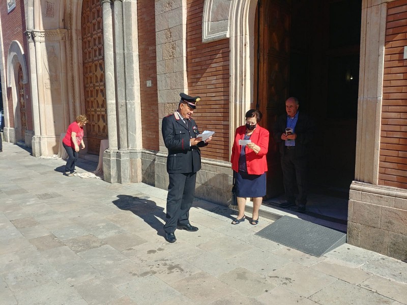 In particolare domenica 02 ottobre, alle ore 10:30 presso la Cattedrale di San Marco Argentano, ed alle ore 12:30 presso la Chiesa della Beata Vergine del Monte Carmelo in contrada Cimino del medesimo comune, a conclusione delle Sante Messe, il Lgt. CS Conti Fernando ed il Lgt. Maiorano Francesco, rispettivamente Comandante e sottordine della locale Stazione, hanno condiviso con le famiglie ed in particolare con i numerosi anziani presenti (oltre 150 tra cui il presidente del locale circolo di aggregazione “La terza età”), un momento di riflessione avente ad oggetto il particolare fenomeno delinquenziale, esemplificando fatti di cronaca ove è intervenuta l’Arma, spiegando le modalità con cui sono perpetrate le truffe, sensibilizzando la popolazione a contattare il 112 laddove resa destinataria di truffe evidenti che spesso fanno leva sui sentimenti delle persone più fragili o perpetrati da falsi appartenenti alle forze dell’ordine e distribuendo, infine, un apposito vademecum realizzato per orientare, sin dalle prime fasi, il comportamento delle potenziali vittime.