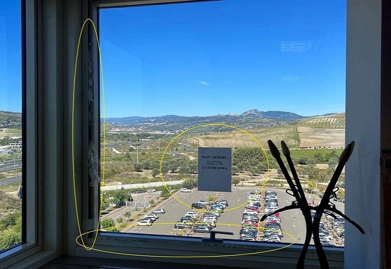 “E per chiudere con una chicca cinematografica – è scritto ancora -, chi capita dalle parti del settimo piano, come accade nei film horror, prima o poi incapperà nella scritta “non aprire questa finestra”. È da tempo che, nel dipartimento “Segretariato Generale”, c’è appunto un finestrone mai riparato in maniera definitiva, ma fissato (in parte) con due viti in acciaio. Rimane chiuso, ormai da diverso tempo, in maniera “anomala”. A coprirne gli spazi tra il telaio fisso e lo stesso finestrone è della carta (per non fare filtrare l’aria o la pioggia d’inverno) e del nastro in carta. Pare che tempo fa i dirigenti abbiano richiesto la riparazione ma finora nulla è avvenuto. Facile intuire che si tratti di un pericolo consistente. Ripetiamo, si trova al settimo piano e quindi a parecchi metri d’altezza dal suolo.