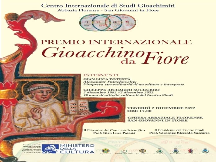 Il 2 dicembre prossimo, nella Chiesa Abbaziale Florense di San Giovanni in Fiore, si terrà un evento culturale organizzato dal Centro Studi Gioachimiti con la consegna del “Premio Internazionale Gioacchino da Fiore” al prof. Alexander Patschovsky. Professore emerito di storia medievale all’università di Costanza, Patschovsky è stato fellow dell’Institute for Advanced Study di Princeton e dell’Università Ebraica di Gerusalemme. Studioso di storia intellettuale e religiosa, autore di numerosi saggi su inquisitori, eretici ed ebrei nell’Occidente medievale, ha curato l’edizione critica di numerose opere di Gioacchino da Fiore, fra cui la Concordia del Nuovo e dell’Antico Testamento, il Trattato sulla Vita e sulla Regola di San Benedetto, l’Esortazione agli Ebrei, tutte le lettere, tutti gli scritti riguardanti l’interpretazione dell’ Apocalisse e numerosi altri scritti brevi.