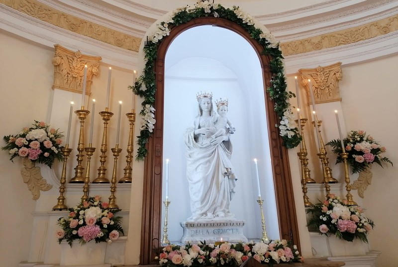 A piedi della statua della Madonna vi è la scritta S. M. DELLA GRUCTA MCCCCCVIII a testimonianza che intorno all’anno 1508 potrebbe essere nato il culto della Madonna della grotta.