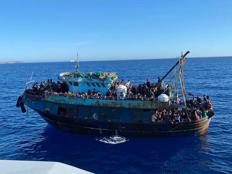 Sul motopeschereccio, scortato da due unità navali della capitaneria di porto e una della guardia di finanza, i migranti sono circa 400.