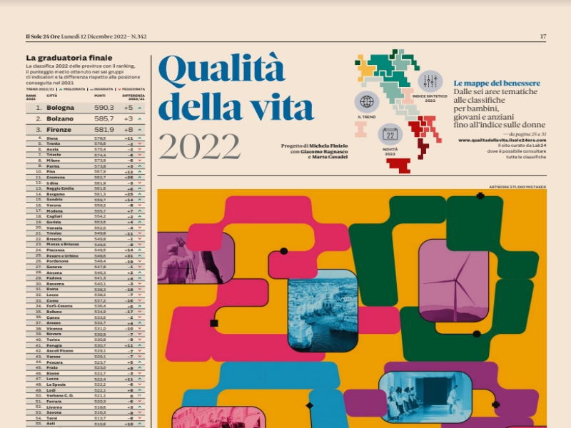 Nulla è cambiato! Ancora la Calabria è ultima per qualità della vita. Questo è l’amaro resoconto della graduatoria nazionale dell’annuale rapporto del “Sole 24 ore”. Le cinque città calabresi in fondo alla classifica. A parte il buon clima per il resto buio totale! Dati questi che devono far riflettere e che comprovano la grande difficoltà della regione di poter fare dei passi avanti dinnanzi ad un disastro esistente da oltre 20 anni a causa di una palese mala politica.